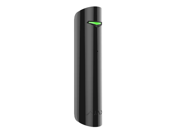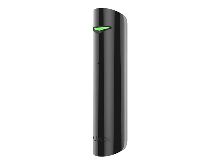 Small wireless detector that notifies of glass being broken by intruders. It is installed at a distance of 9 m from the window and filters events that cause false alarms about breakage. Detects broken glass using an electret microphone, which registers the sound of impact against the glass and of the glass falling. Two-factor detection of broken glass prevents false alarms caused by thunder, dogs barking and noise from passing trucks.