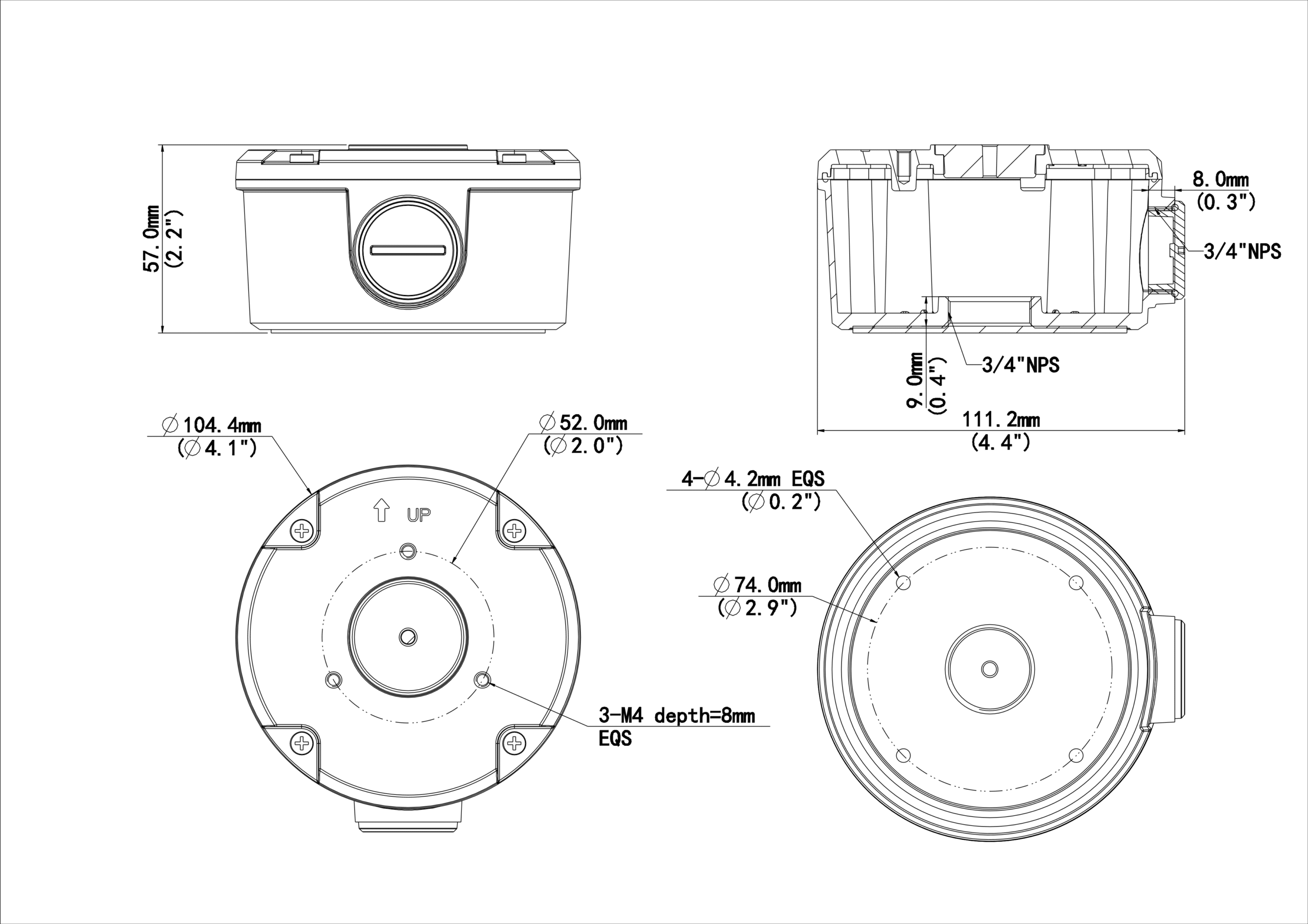 – Junction box for IPC21xx circular base camera (Extra back outlet)